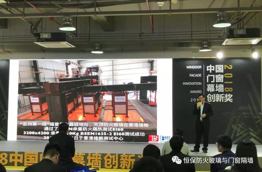 在本次展會中,恒保·福普思公司總經(jīng)理陳沃林還參加了“2018中國門窗幕墻創(chuàng)新獎(jiǎng)--星品發(fā)布會” 活動,演講主題為“防火玻璃地臺采光頂?shù)臏y試與應(yīng)用”,獲得了現(xiàn)場聽眾的肯定與支持,并在會后解答了各方來客的問題。