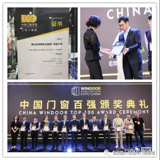 同期3月5日上午,由鋁門窗幕墻新產(chǎn)品博覽會(huì)、中國(guó)房地產(chǎn)業(yè)與門窗幕墻聯(lián)盟、中國(guó)建筑金屬結(jié)構(gòu)協(xié)會(huì)鋁門窗幕墻委員會(huì)等單位聯(lián)合評(píng)審,經(jīng)過多家地產(chǎn)商和業(yè)主的選材經(jīng)驗(yàn)共享認(rèn)可,鶴山恒保公司獲得“中國(guó)門窗百?gòu)?qiáng)工程門窗類(2018-2019)榮譽(yù)稱號(hào)”。