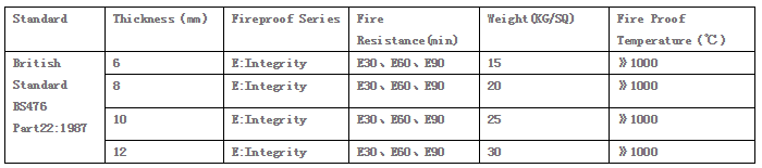 英標系列單片防火玻璃技術參數如下