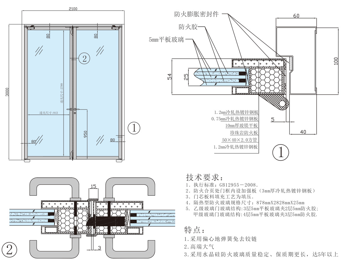 1. Meet the fire protection requirements: the overall fire requirements , heat and insulation performance of 0.5, 1.0, 1.5, 2.0 hours;